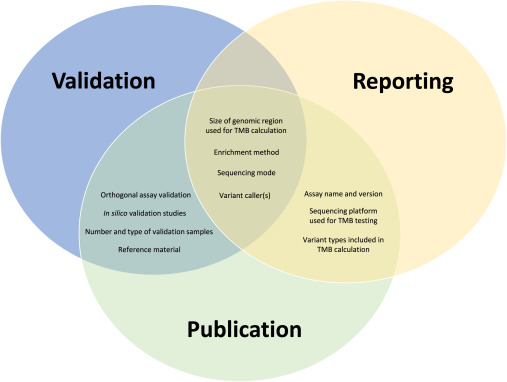 In addition, this manuscript also provides two illustrated supplements, one that summarizes their systematic review of literature describing TMB clinical testing and one that displays recommended elements for inclusion in tumor mutational burden (TMB) validation studies and clinical reports (shown below).