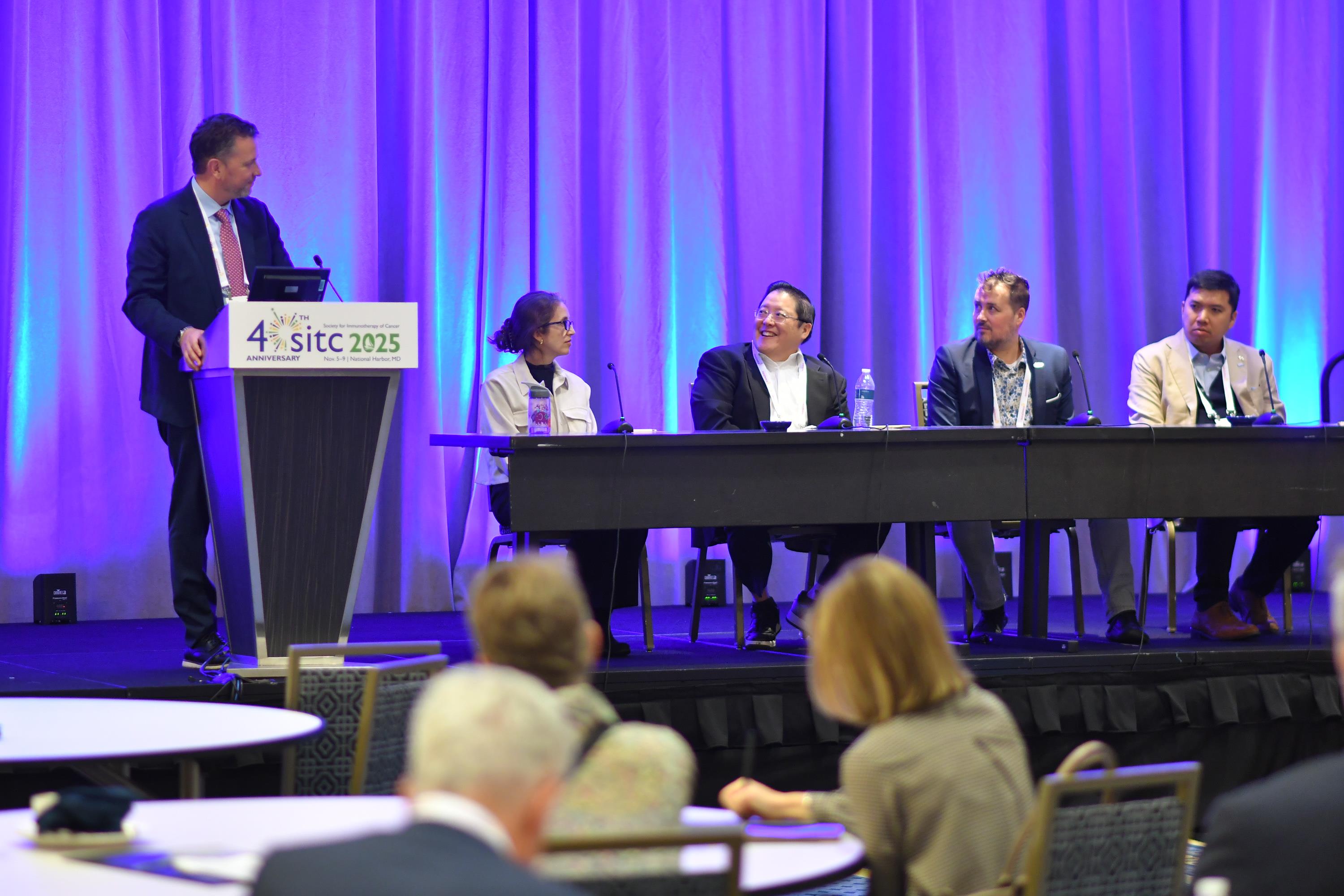 SITC hosted an engaging conversation with biotech entrepreneurs Robert Coffin, PhD (Replimune), and Rachel Humphrey, MD (Normunity, Inc.), moderated by Dr. Bommareddy. They shared first-hand lessons from founding and growing biotech companies, from early IP filings to building teams, navigating funding, and staying true to their scientific vision.
